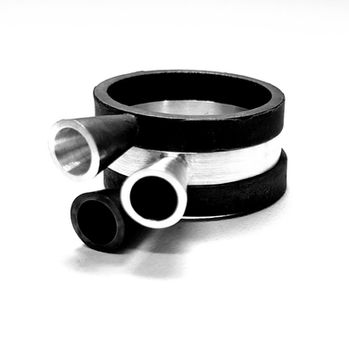 A série ‘Solitário?’ joga com as possibilidades dos metais, acabamentos, presença e ausência das gemas. Foscos, polidos ou oxidados, monocromáticos ou coloridos, juntos ou separados; anéis e brincos podem ser compostos de formas variadas.