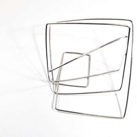 A série Traço, como o nome insinua,  trata-se da construção de desenhos tridimensionais a partir de linhas metálicas.